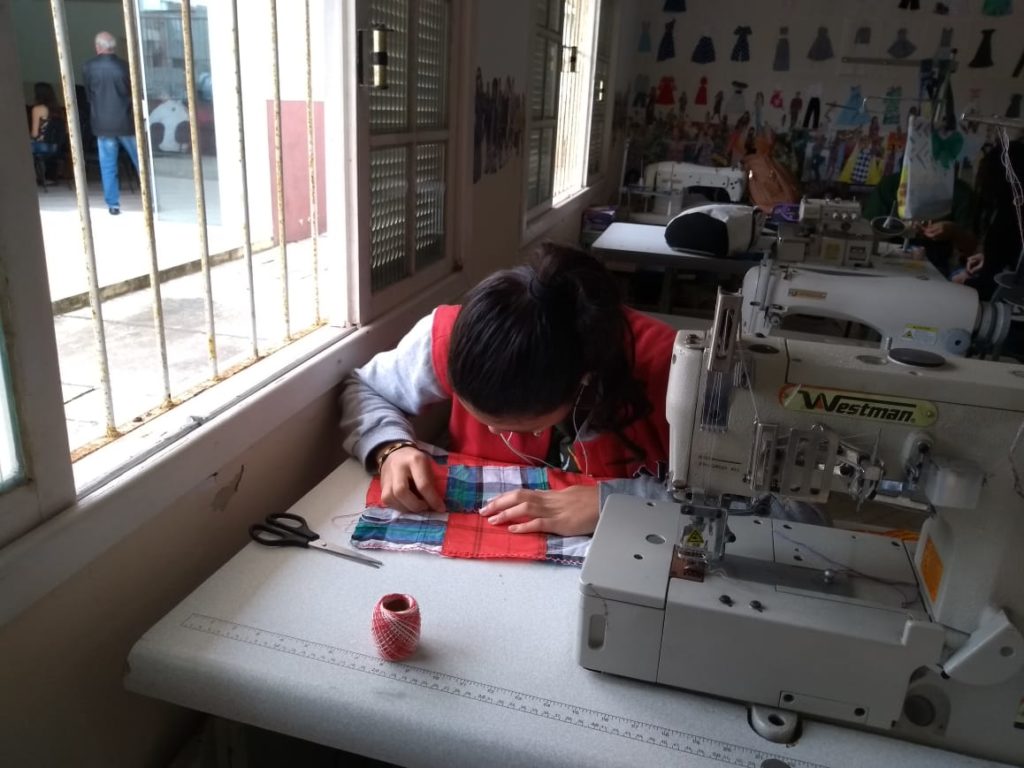 Com enfoque em qualificação, trabalho e renda, os jovens aprenderam a confeccionar roupas, bolsas e acessórios, reutilizando materiais como retalhos, tecidos usados, banners e outros resíduos.