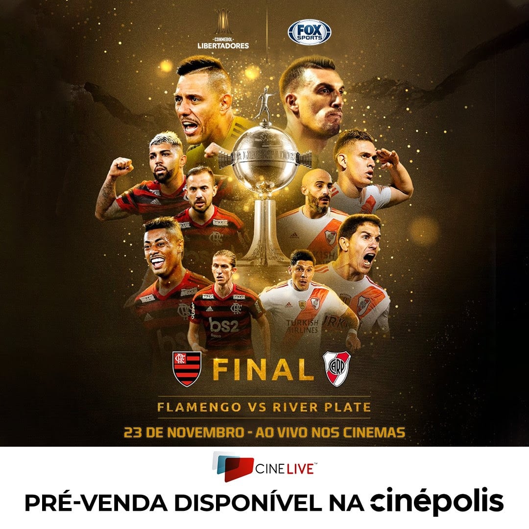 Prepare-se para um roteiro digno dos melhores estúdios de cinema do mundo. É que amanhã, dia 23 de novembro, a partir das 16h30 (horário de Brasília), acontece a final da Libertadores da América 2019, em uma decisão que une dois dos maiores rivais do futebol mundial: Brasil x Argentina, ou melhor, Flamengo e River Plate. Pela primeira vez na história da competição, a final será em jogo único, como já acontece na UEFA Champions League – a partida será realizada em Lima, no Peru. E a Cinépolis Brasil, maior operadora de cinemas da América Latina e segunda maior do mundo em ingressos vendidos, não poderia ficar de fora dessa e vai exibir ao vivo a final em 29 complexos de sua rede.
